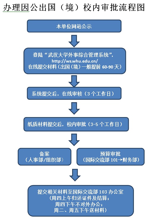 (科研外事工作 外事)办理因公出国境校内审批流程图
