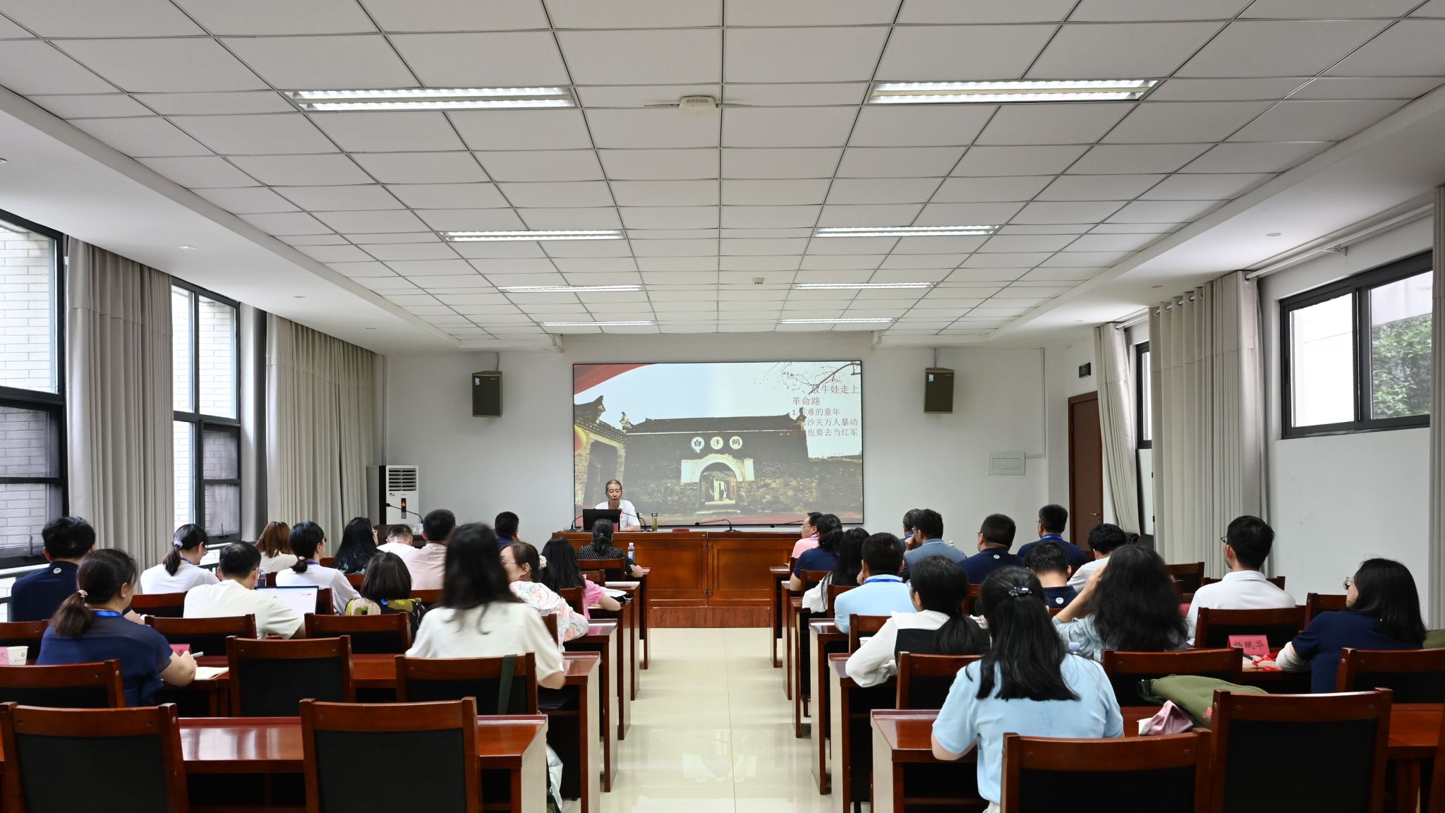 培训内容有课堂教学和实践教学两部分。在课堂教学环节,大家聆听了《大别山二十八年革命历史及其启示》的讲座,鄂豫皖三省交界的大别山区是著名的革命老区、建党基地,作为重要的红色堡垒、精神高地,这里堪称“红军摇篮、将军故乡”,在“群英结党救中华、朴诚勇毅干革命”的革命岁月里,积淀形成了“坚守信念、胸怀全局、团结奋进、勇当前锋”的大别山精神。在“红色故事会”的课堂里,红军后代罗传德在《坚定信念跟党走》的故事讲述中,以父亲百岁老红军团长罗明榜的革命经历为主线,刻画了历经长征、西路军斗争和解放战争等大小战役、出生入死的革命者群像,带领大家重温了那段峥嵘岁月。