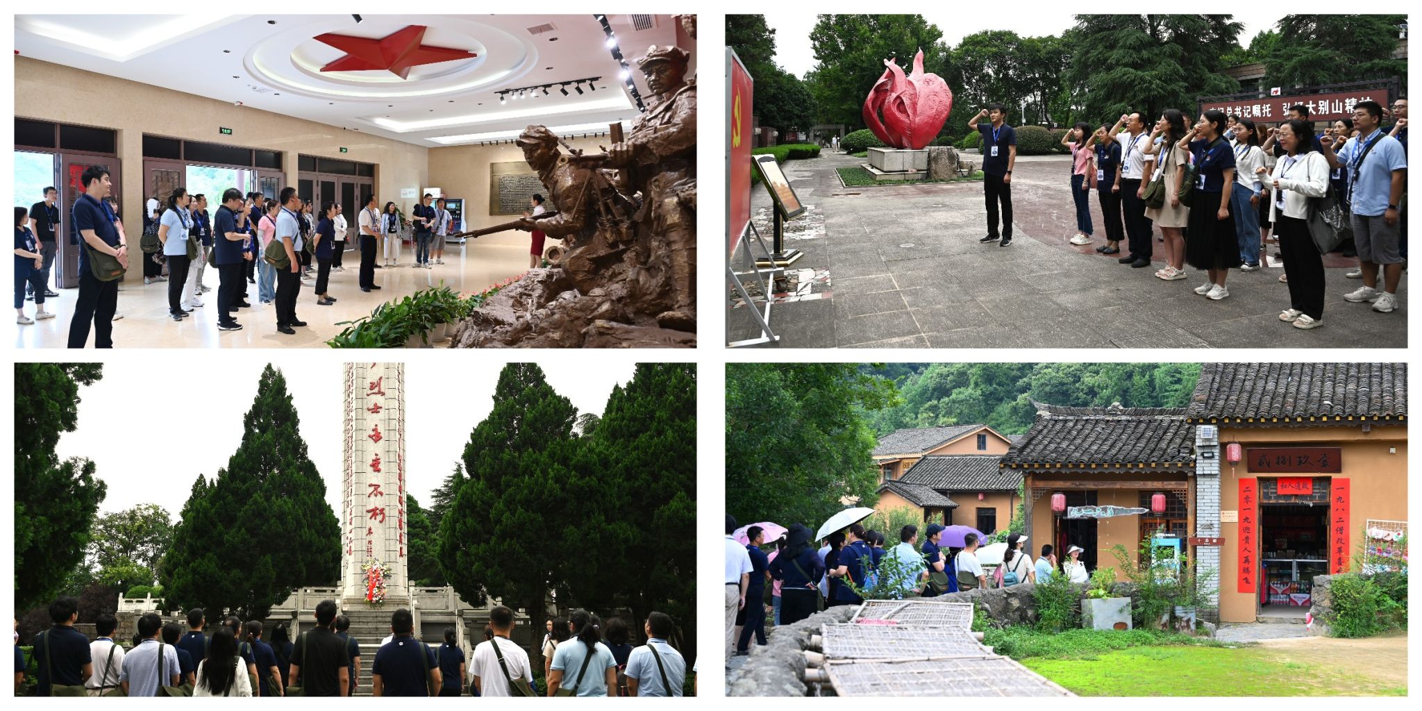 实践教学环节,大家先后参观了鄂豫皖苏区首府烈士陵园和革命博物馆、鄂豫皖苏区将帅馆、许世友将军故里等,瞻仰烈士故里,重温红色记忆,感悟许世友将军“忠国孝母”的情怀,聆听徐海东、徐向前等将军的光辉事迹,感受革命老区“家家有红军,村村有烈士、山山埋忠骨、岭岭皆丰碑”的悲壮历史。在鄂豫皖苏区首府烈士陵园,大家在革命烈士纪念碑前举行了敬献花篮仪式,深切缅怀革命先烈,感受来之不易的幸福生活。党员们在英烈广场重温入党誓词,面对党旗庄严宣誓。最后,大家来到有着百年历史的“乡村创客小镇”田铺大塆,感受新时代乡村振兴的优美画卷。