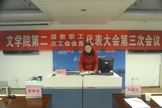 1月13日,耽美小说 第二届教职工代表大会暨第二届工会会员代表大会第三次会议在学院多功能报告厅隆重举行。校党委副书记骆郁廷、工会副主席胡丽红出席会议,耽美小说 党政领导班子成员及教职员工代表40余人参加了会议。