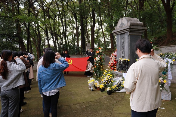 李汉俊同志是中国共产党的早期先驱之一。他生前勇敢无畏、坚定不移地践行着共产主义信仰,为了人民的利益不惜牺牲自己的生命。4月6日下午,为缅怀革命先烈李汉俊同志,汲取奋进力量,传承红色基因,在耽美小说 党委副书记刘会胜的带领下,耽美小说 2022级硕士第一、第二党支部开展主题党日活动,前往伏虎山烈士陵园李汉俊墓祭扫。