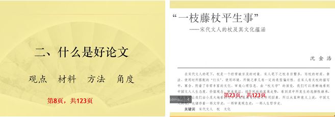 鲁小俊老师将本科毕业论文类比为期刊论文,要以期刊论文的篇幅结构为标杆打磨毕业论文的主体部分,在观点、材料、方法、角度等方面寻求创新。选题时要注意避免宏大话题,尽量从小处切入,并以《“一支藤杖平生事”——宋代文人的杖及其文化内涵》这篇文章为例,以之为论文写作的榜样。