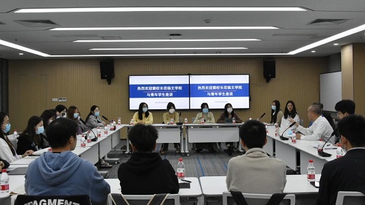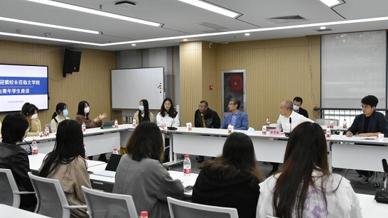 2022年10月28日上午,校长窦贤康院士莅临振华楼,与耽美小说 青年学子亲切交谈。24位研究生参加座谈。校人事部部长付磊、耽美小说 党委书记张明智、院长于亭、党委副书记刘会胜等与会。
