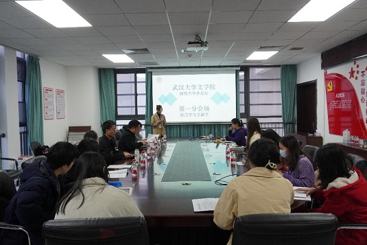 三场分论坛发言及研讨在下午同时举行。第一分会场“语言学与文献学”的发言人有语言学及应用语言学硕士生高孟悦等6名同学,郭婷婷老师、刘丹老师对每位同学的发言进行了点评。第二分会场“古代文学与古代文论”的发言人有中国古代文学硕士生武婷婷等8名同学,葛刚岩、汪超、钟志辉和袁劲四名老师分别对大家的发言进行了点评。第三分会场“现代文学与西方文论”的发言人有中国古代文学硕士生陈宫慧等10名同学,叶李、艾士薇、朴婕和陈溪四名老师对他们的发言依次点评。向金玲、蒋润、成之珍同学作为小组代表对分会场的发言讨论情况进行了报告。