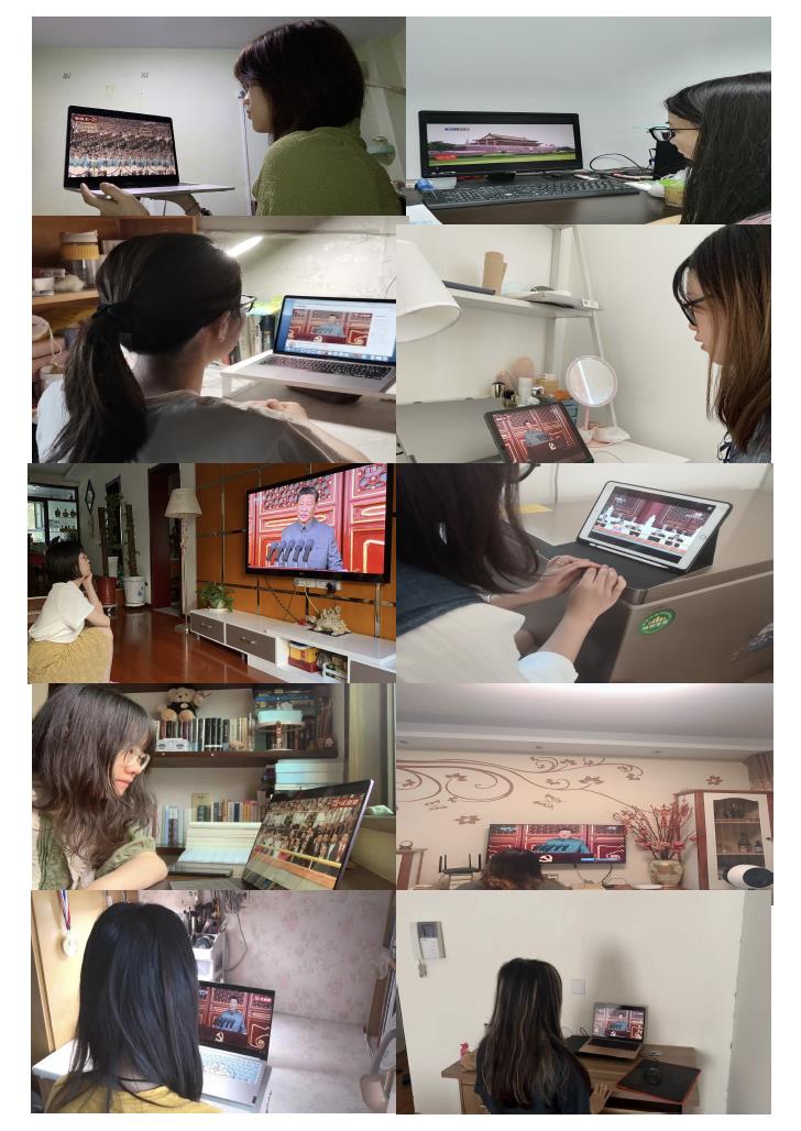 学院教师以不同方式收看