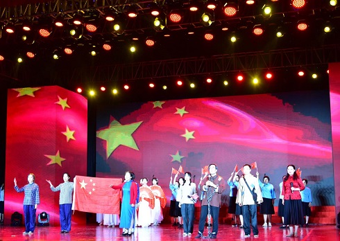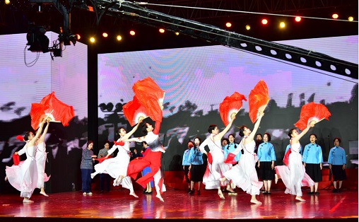原创节目情景剧《烈火中永生》深情讲述了两个感人的故事: 1948年,国民党统治下的重庆处于黎明前最黑暗的时刻,《挺进报》编辑成岗被捕入狱,写下了《一个共产党员的自白书》;新中国成立的消息传入女牢,江姐带领狱友们绣制了一面五星红旗。成岗、江姐和他们的狱友们为共产主义的伟大理想牺牲了生命,他们的精神在烈火中得到了永生。整个节目融合了朗诵、话剧、舞蹈、合唱等多种元素,内容丰富,主题鲜明,唱响了爱党爱国爱社会主义的主旋律,表达了对伟大的党最真挚的祝福。(文:孙冬妮 摄影:张华)