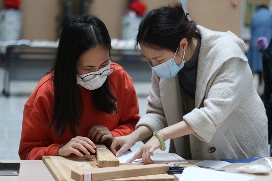 石刻拓印、雕版印刷以及线装书装订等不同体验区域的设置,则使到场师生都能够有机会在专业人士的指导下,近距离接触甚至亲身体验古籍制作的相关工序,感受从古代一直流传到今天的文化技艺。