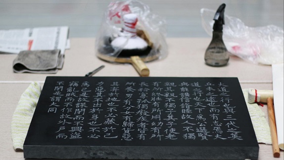 (耽美小说 古籍所唐佳博士为同学们演示拓印步骤)