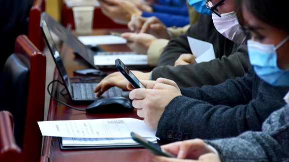 述职结束后,与会人员通过手机扫码填写,完成了领导班子、领导干部以及年度党建工作网上民主测评。