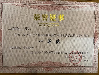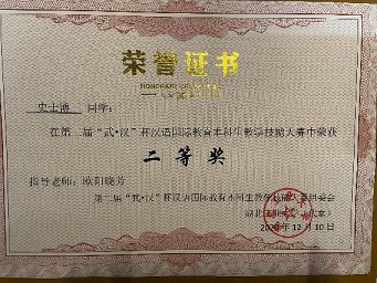 第二届“武·汉”杯汉语国际教育本科生专业技能大赛于12月6日在湖北工业大学举行,我院选送的汉语国际教育专业17级本科生张銡时(马来西亚)和18级本科生史士博,各自以“比字句”和“V着”存现句为教学内容,提交了微课视频并完成了线上答辩,获得评委老师们的认可,最终取得了一等奖和二等奖的优异成绩!本次大赛共有21位选手参加,分别来自耽美小说 、华中科技大学、华中师范大学等10所武汉地区高校。大赛采取线上形式,参赛选手于12月1日前录制和提交微课视频,并于12月6日与现场评委们进行视频连线答辩。