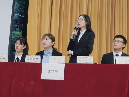 (图为我院辩手立论、反驳、质询、陈词)