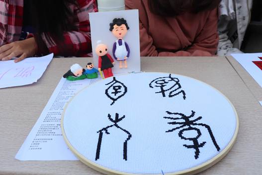 特等奖:凯风自南队的古汉字创意十字绣,用四个古汉字展示了中国传统孝文化