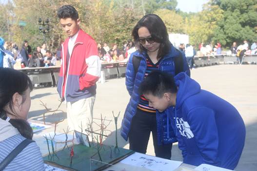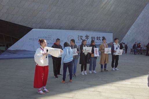 整个活动由作品展示、体验创作、互动游戏、闯关问答四大板块构成。作品展示有摊位展示,也有登台讲解,观众不仅可以看到作品,还可以通过讲解,了解每件作品的设计与制作过程;体验创作可以通过“亲临汉字”活动临摹古汉字,还可以用橡皮泥“手塑汉字”,亲身体验参赛队伍创新学习古汉字的方式;互动游戏最为热闹,名为“汉字寻亲”,先展示一个汉字的不同字形,每位参与者分配一个古字形,打乱之后再找到手持属于同一个字的不同字形的参与者,找到了这个汉字的“亲戚”;闯关问答主要是根据古文字设计的“看图说话”和“汉字密语”,观众们乐在其中。