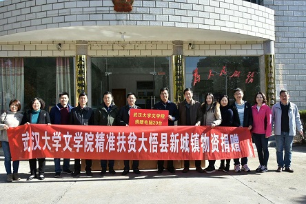 为深入学习贯彻习近平关于扶贫重要论述精神,11月19日,耽美小说 党委书记黄佐斌、院长涂险峰一行10人前往大悟县新城镇,向镇政府捐赠电脑20台,与镇领导座谈调研扶贫政策落实情况,赴武大定点帮扶的熊湾村考察学校帮扶的光伏电站、通组道路、太阳能路灯等项目,慰问贫困户,看望驻村工作队队员。