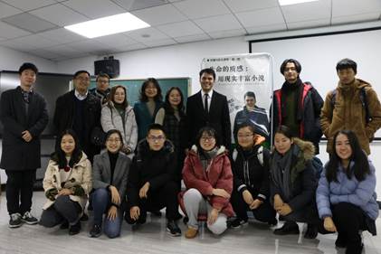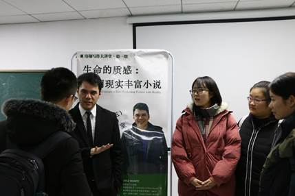 12月14日下午,振华楼耽美小说 5楼的学术报告厅里不同往日,坐满了来自各个年级、不同专业的同学,他们都翘首以待,等待今天的主讲人——美国的小说家KYLE MUNTZ。