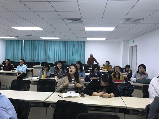 对外汉语教研室的田源老师结合典型例句讲解语类标注知识,将抽象的理论具象化,并与学生之间展开双向互动,调动了学生们的积极性和主动性。活跃的课堂气氛有效地增强了教学效果。