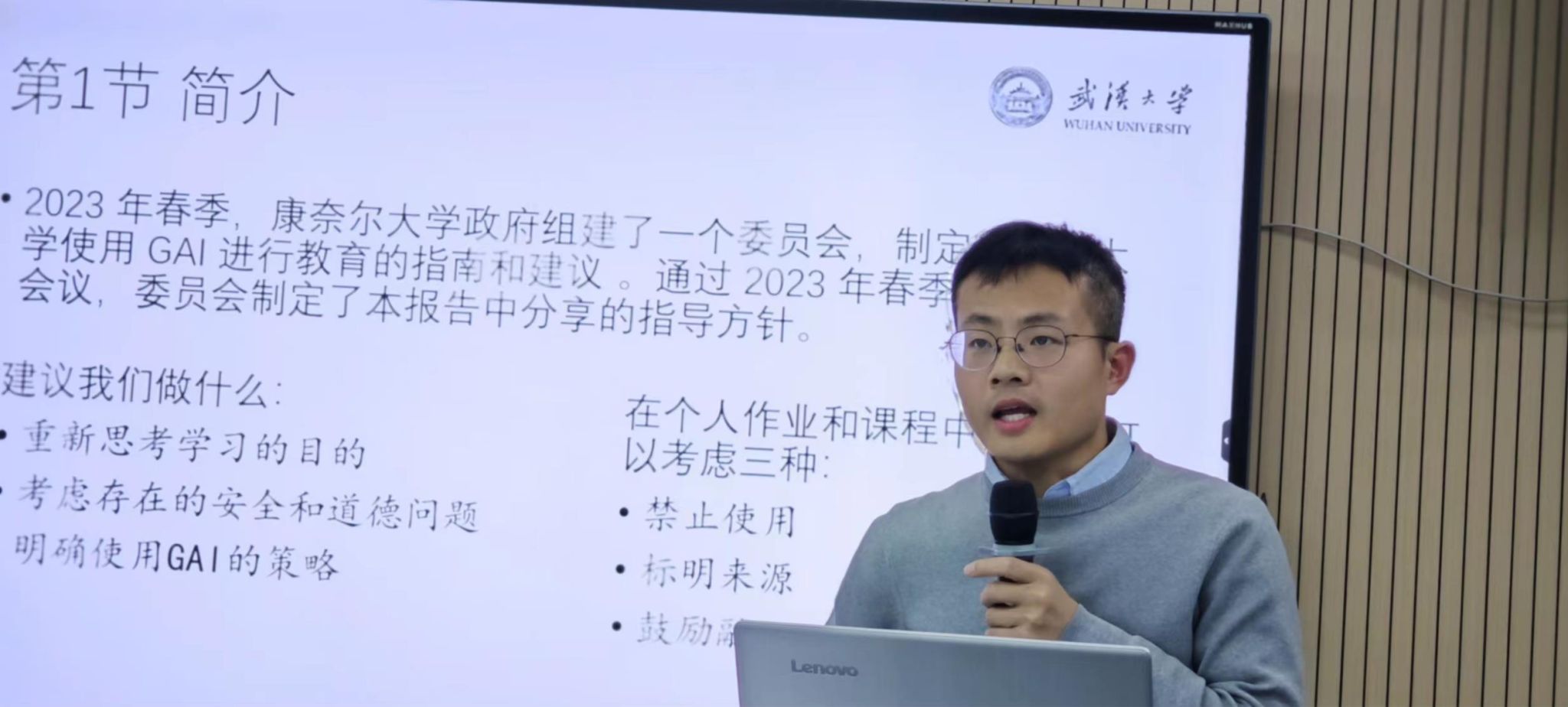 本次活动发起人、耽美小说 杨旭老师从教学发展的角度对康奈尔大学委员会的人工智能状况报告进行解读。杨老师认为,人工智能为大学教学带来的改变需辩证看待,建议在校内的教学和研究中融入人工智能,顺应耽美小说 “数智教育”发展趋势,并推出规范化使用的措施意见。