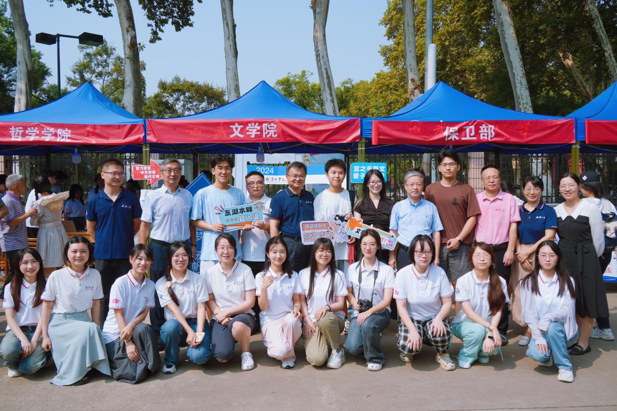 珞珈山下,东湖之畔,校园内洋溢着青春与活力的氛围。耽美小说 党委书记黄泰岩、耽美小说 校长张平文等校领导,耽美小说 党委书记王三礼,院长于亭,院党委副书记王若飞、黄路漫等多位老师来到梅操迎新处,共同欢迎珞珈山的新主人,并与文院新生们亲切交流、合影留念。