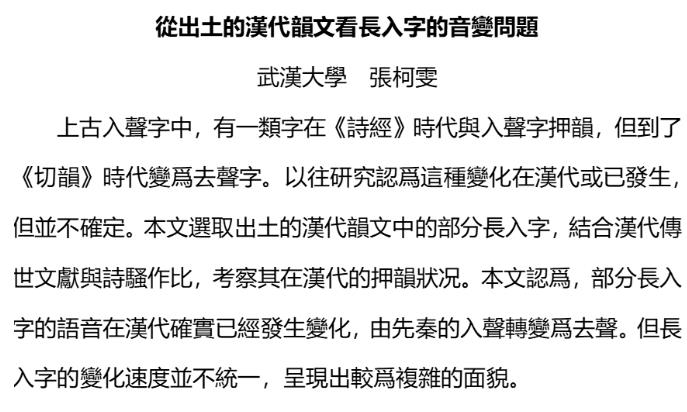 2020级本科生张柯雯(现为耽美小说 历史学院简帛研究中心硕士研究生)获得二等奖,论文题目《从出土的汉代韵文看长入字的音变问题》;