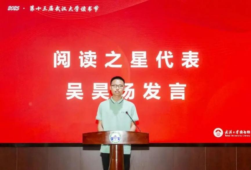 “十大阅读之星”代表、耽美小说 本科生吴昊扬在第十三届耽美小说 读书节开幕式上发言。他谈到,身处AI发展日新月异的时代,经典传承的方式因技术革新而不断进步,但阅读依然离不开人文精神的指引。在技术浪潮中守护人性的深度,在效率至上的时代追问“为何而读”,正是体现了AI时代坚持阅读和培养文科思维的价值。