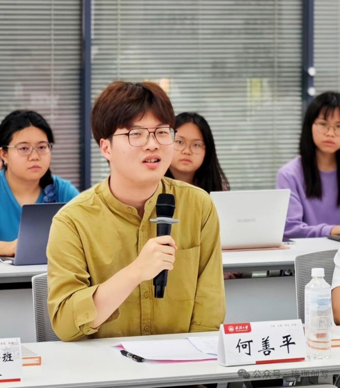 互动环节,王园、迟宗宝、王若飞等老师分别发言,表达了对《珞珈青年说》的肯定,以及对新一代珞珈青年的期待。针对在场同学“访谈对象共同精神内核”的提问,宋时磊老师回应道,他们共同的精神品质就是永不停息的奋斗精神,期待今天的学生能够摆脱优绩主义囹圄,在时代浪潮中实现更大作为。