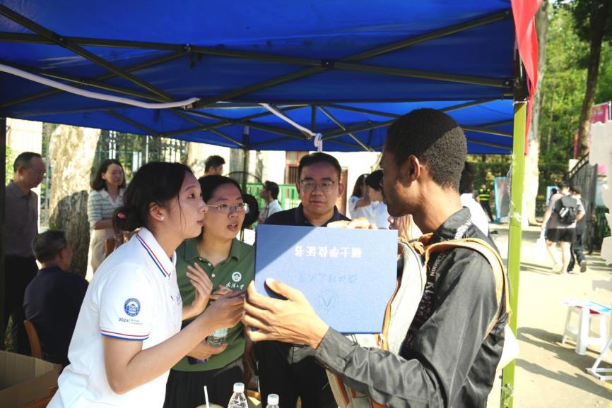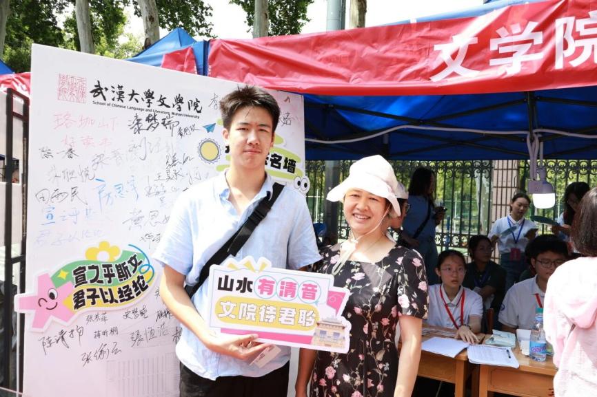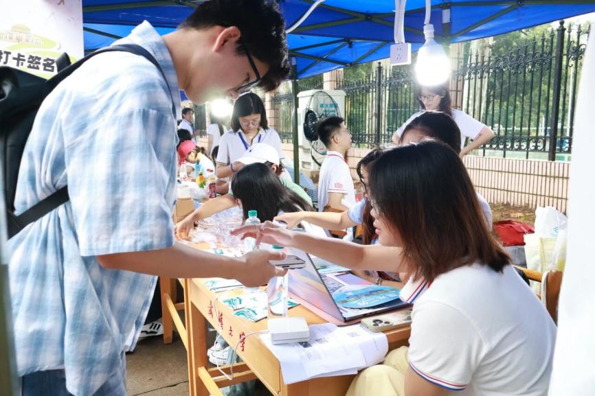 报到处逐渐人声鼎沸,信息核验、系统注册、校园卡与新生礼包的领取每一步有学长学姐在旁温言引导、释疑解惑,尽显迎新的温度。新生们手持“宣之乎斯文,君子以经纶”的标牌,在打卡墙前与家人老师合影,来记录这个独特而又充满意义感的时刻。