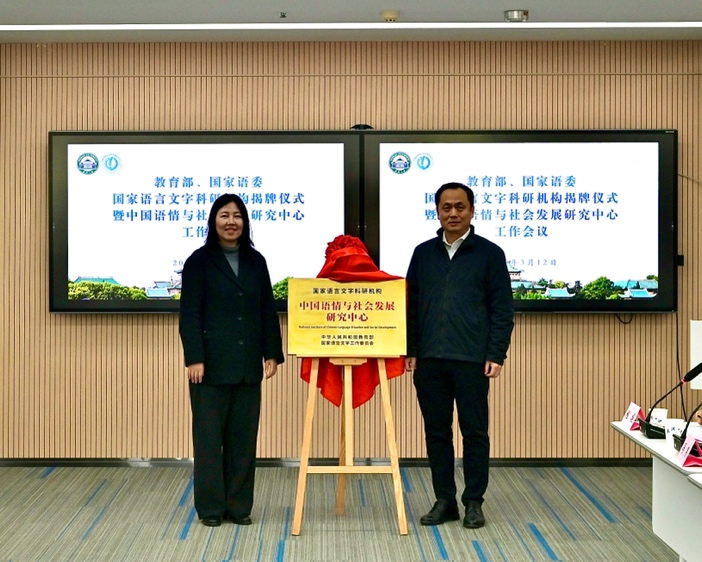 揭牌仪式在热烈的氛围中拉开帷幕。陆伟副校长与赫琳教授共同揭牌,启用新的名称“国家语言文字科研机构中国语情与社会发展研究中心”。陆伟代表学校向中心的升级表示热烈祝贺,向长期以来关心支持中心发展的教育部、国家语委以及学校相关职能部门表示衷心感谢。他指出,此次揭牌标志着中心发展迈入新阶段,希望中心以此为契机,再接再厉,聚焦国家战略需求,不断提升科研创新能力和社会服务水平,为国家语言文字事业高质量发展贡献更大力量。