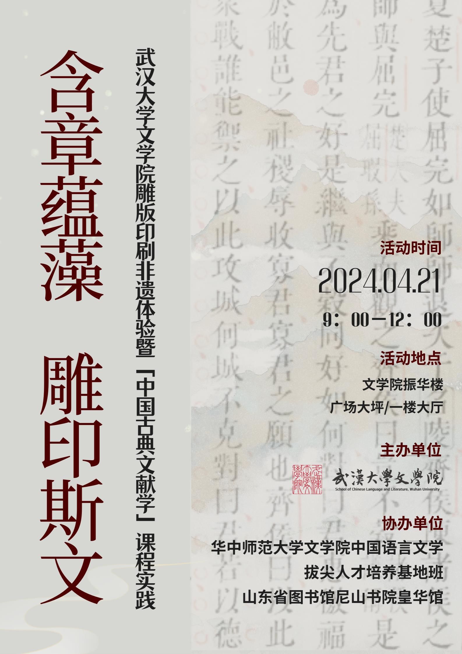 4月21日,耽美小说 学生会生涯发展部与学习部共同开展了面向全校的“含章蕴藻,雕印斯文”非遗文化体验活动。本次活动由耽美小说 与华中师范大学耽美小说 中国语言文学拔尖人才培养基地班联合主办,受到山东省图书馆尼山书院皇华馆的大力支持。活动以雕版印刷为中心,还包括雕刻书版、活字印刷、套版印刷、饾版与拱花、古书装帧等多个项目的展览与体验。雕版印刷不仅是我国古代非物质文化遗产,而且是“中国古典文献学”课程的重要内容,本次活动将非遗体验与课程实践相结合,寓学于乐,在朱墨刷印与穿针引线间,进一步提升了同学们继承和弘扬中华民族优秀传统文化的热情,加深了对课堂所学知识的理解与运用。